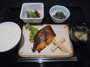 本日は、鰆に柚子の香りをつけて焼き上げました。甘辛味噌の豆腐田楽と共にお召し上がりいただきます。